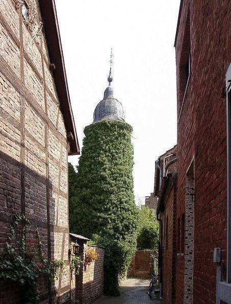 Um die mittelalterliche Burg herum entwickelte sich der Historische Ortskern von Bedburg-Kaster. Anfang des 14. Jahrhunderts wurden der Siedlung Kaster von Graf Gerhard VI. von Jülich die Stadtrechte verliehen und eine Stadtbefestigung errichtet. Die Befestigung besteht aus einer Ringmauer und zwei Stadttoren, von denen sich das Agathator im Westen und das Erfttor aus dem 16. Jahrhundert im Osten erhalten haben. Im Grundriss präsentiert sich die Form der Stadt als unregelmäßiges Fünfeck, das in der Mitte durch die Hauptstraße durchlaufen wird.