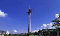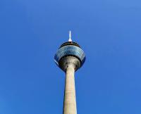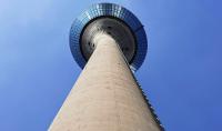 The Rheinturm is situated very close to the Landtag. The 240.5m tall TV tower is completely made of reinforced concrete, a novelty in structural engineering. This was made possible by using cooling tower construction techniques. The cup-like deck lends the tower its characteristic silhouette. The tower rests on a foundation ring of 34m in diameter, borne by 256 in-situ concrete pillars of up to 22m in length.