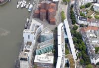 Der Ende 2002 fertig gestellte Neubau der Architektenkammer NRW steht an prominenter Stelle im Eingangsbereich des Düsseldorfer Medienhafens.