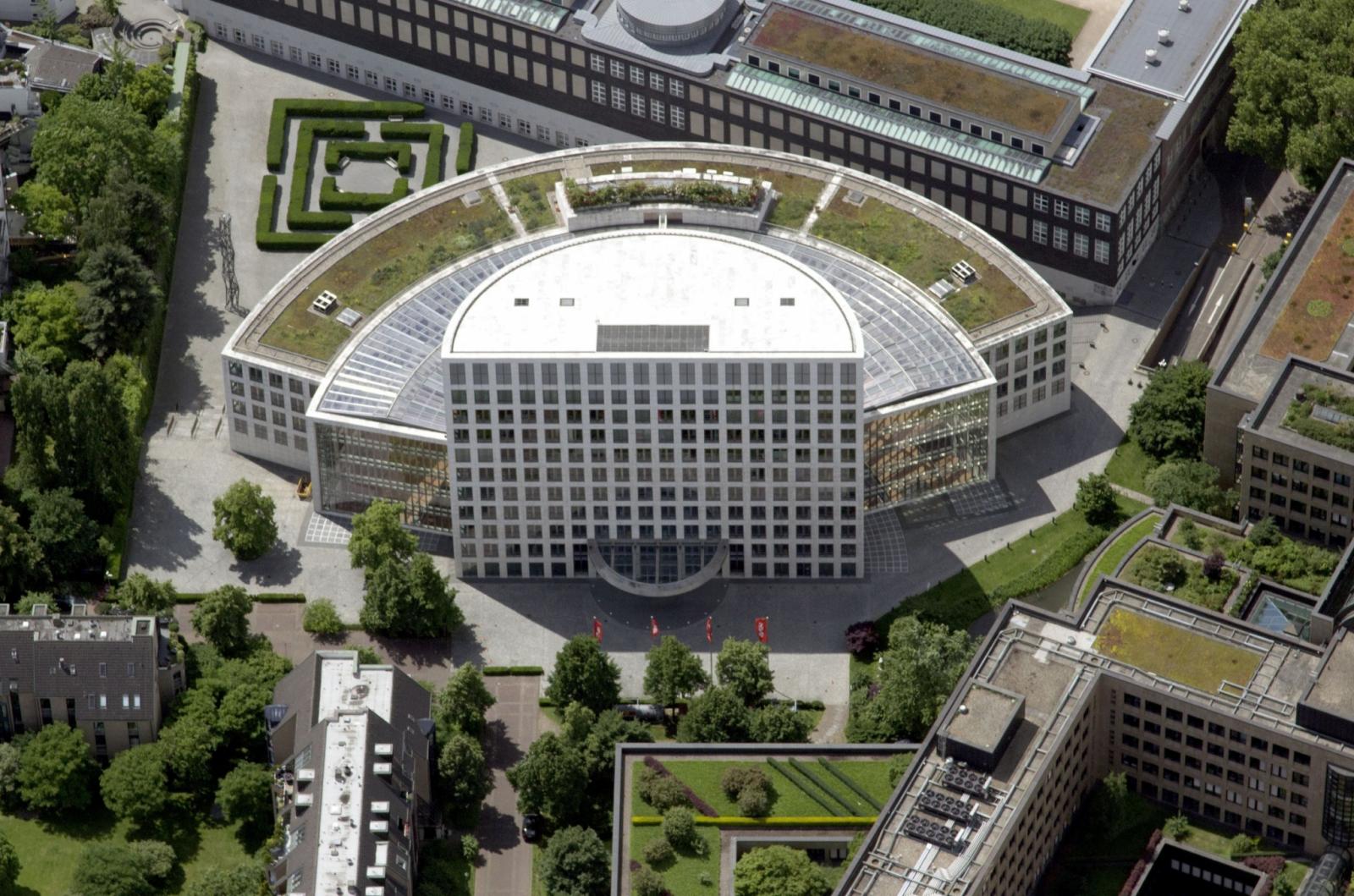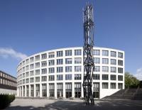 Der radial gegliederte Baukörper des etwa 25 000 m² großen Verwaltungsgebäudes besteht aus einem zehngeschossigen Hochhaus (Turm), das über ein großzügiges, umlaufendes Atrium mit einem fünfgeschossigen Baukörper (Ring) verbunden ist. Die geometrische Ordnung der Gesamtanlage leitet sich von einer axial beschnittenen Kreisform ab, die den Radius der einzelnen Gebäudeteile vorgibt. Das großzügige Atrium wirkt wie ein eigenständiges Element, ohne die beiden Baukörper optisch voneinander zu trennen: Es zoniert und vermittelt zugleich.
