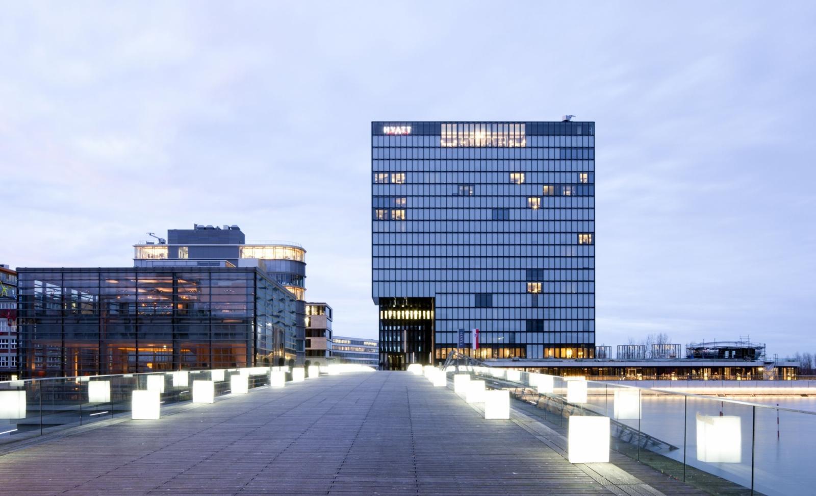 Die Fuß- und Radwegbrücke über den ehemaligen Handelshafen wurde im Zuge der Neugestaltung des Düsseldorfer Medienhafens errichtet.