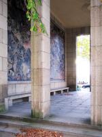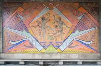 Heinrich Nauens Wandmosaik Die Tanzgruppe von 1925/26 zeigt vier anmutige Figuren im Tanz, deren rhythmische Bewegungen in expressiven Linien und leuchtenden Farben den Aufbruch und das neue Menschenbild der Moderne verkörpern.