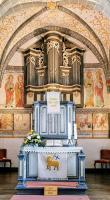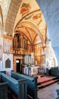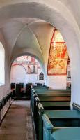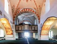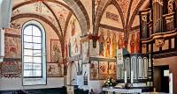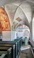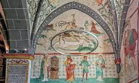 Die umfangreiche Ausmalung des Kircheninneren begann um 1480 und wurde über mehrere Jahrzehnte fortgeführt. Das Bildprogramm umfasst Darstellungen biblischer Texte, ergänzt durch erläuternde Schriftzüge, insbesondere aus den Evangelien. Die Malereien dienten nicht allein der Ausschmückung des Raumes, sondern hatten eine deutliche didaktische Funktion. Szenen mit teils drastischen Darstellungen von Teufel und Hölle verdeutlichen den moralischen Anspruch der Bilder und ihre Funktion als visuelle Glaubensunterweisung.