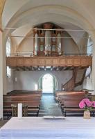 Der Innenraum wird durch Pfeilerarkaden gegliedert, die das Langhaus in drei Schiffe teilen. Die Proportionen wirken gedrungen und geschlossen, was dem Raum eine archaische, ruhige Wirkung verleiht. Die bauliche Struktur der Romanik ist gut ablesbar und bildet den Rahmen für die künstlerische Ausstattung.