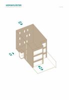 Der Baukörper ist auf einem schmalen, von der Straße aus nicht einsehbarem Grundstück im Innenhof eines dreieckig zulaufenden Blocks positioniert, dessen geometrische Form und Erschließung die architektonische Setzung maßgeblich bestimmen. Der Zugang erfolgt über die Tordurchfahrt eines Vorderhauses an der Mettmanner Straße, wodurch das Gebäude im Stadtraum nicht direkt sichtbar ist und erst im Inneren des Blocks in Erscheinung tritt. Die grenzständige Bebauung an der Brandwand des östlichen Nachbargebäudes sowie die begrenzte Grundstücksfläche führten zu einer konsequent vertikalen Organisation des Raumprogramms. Anstelle einer flächigen Ausdehnung wurde das Einfamilienhaus mit drei Vollgeschossen ohne Keller geplant, sodass sowohl die erforderlichen Abstandsflächen eingehalten als auch das Baugrundstück effektiv ausgenutzt werden konnten.