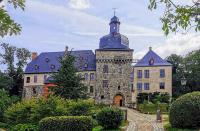 Im Südosten des Ortes thront das Schloss Liedberg, dessen Herrenhaus im 17. Jahrhundert entstanden ist. Der mächtige Torturm, der die Anlage dominiert und das Zentrum bildet, stammt mit Ausnahme seiner barocken Haube bereits aus dem 14. Jahrhundert. 1701 war der Sonnenkönig Ludwig XIV. im Liedberger Schloss zu Gast, um sich hier mit dem Kölner Kurfürsten Josef Clemens zu beraten. Nachdem das Schloss im Zweiten Weltkrieg durch eine Bombe getroffen wurde, verfiel es zunehmend. Erst 2008 bis 2018 wurde eine grundlegende Sanierung der Anlage durch den Schlosseigentümer durchgeführt, bei der auch die zerstörten Trakte rekonstruiert wurden.