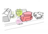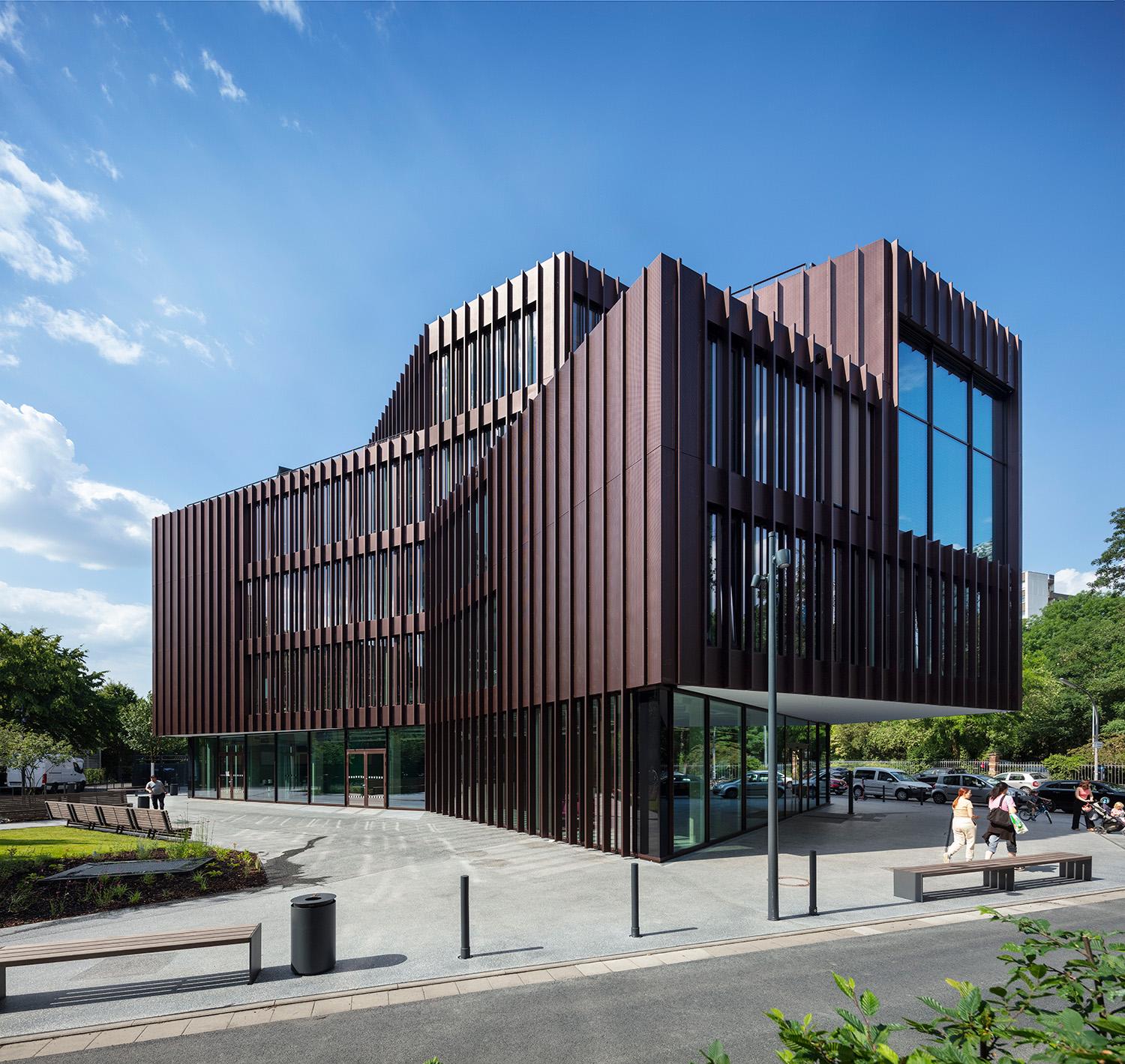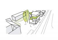 Der fünfgeschossige Neubau schließt die städtebauliche Lücke zwischen der Kindertagesstätte und dem Archäologischen Institut der Universität zu Köln und stellt einen eigenständigen Beitrag zur räumlichen und funktionalen Weiterentwicklung des Bildungsstandortes dar. Als Solitär reagiert der Baukörper auf die umliegende Bebauung und nimmt durch seine polygonale Form mit Vor- und Rücksprüngen Bezug auf den Maßstab, bestehende Baufluchten und Höhenlinien der Nachbargebäude.