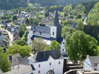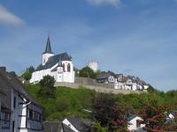 Die Kirche befindet sich innerhalb des historischen Burgareals von Burg Reifferscheid. Die Stammburg der Herren von Reifferscheid ist seit dem 12. Jahrhundert urkundlich belegt. Im Jahr 1385 gelangte die Herrschaft an das Erzbistum Köln. Nach der Konfiskation des Besitzes des Grafen Sigismund von Reifferscheid durch die französische Besatzung im Jahr 1794 wurde die Burg verkauft und zum Abbruch freigegeben.
