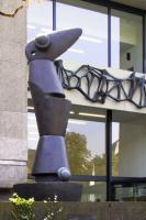 Karl Hartungs 1967 geschaffenes Bronzerelief an der Kunsthalle Düsseldorf setzt mit seinem filigranen, dynamischen Liniengeflecht einen bewussten Kontrast zur massiven Architektur des Sichtbetonbaus. Die abstrakten, an tanzende Figuren erinnernden Formen verleihen dem Bau Leichtigkeit und eröffnen eine neue Beziehung zwischen Kunst und Architektur.