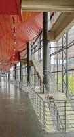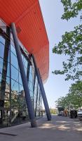 Ein weiteres charakteristisches Element der Lanxess Arena ist ihre Fassade, die aus Glas und Stahl besteht. Die großzügige Verglasung sorgt dafür, dass Tageslicht in die Arena eindringen kann, was den Innenraum hell und einladend wirken lässt. Bei Dunkelheit wird die Fassade von außen angestrahlt, sodass die Arena als leuchtendes Wahrzeichen über Köln erstrahlt. Die Transparenz der Architektur symbolisiert Offenheit und Modernität und unterstreicht die Rolle der Arena als Treffpunkt für Menschen aus aller Welt.