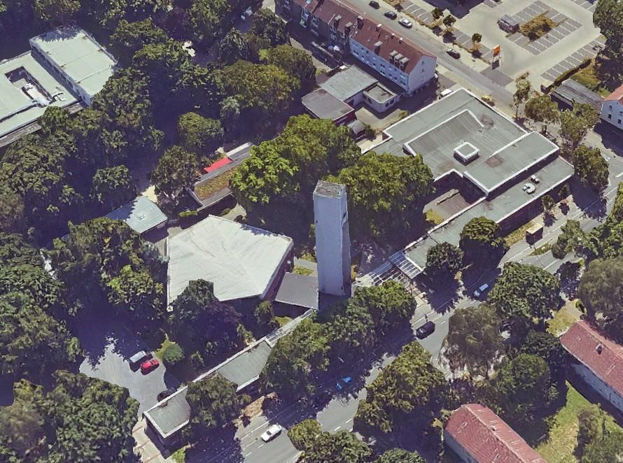 Die evangelische Lukaskirche in Gelsenkirchen-Hassel markiert einen besonderen architektonischen und städtebaulichen Ort: Sie liegt an der Schnittstelle zwischen den historischen Zechenhaussiedlungen der 1910er und 1920er Jahre und den Nachkriegssiedlungen der 1950er Jahre – im äußersten Norden der Stadt, beinahe an der Grenze zum Münsterland.