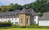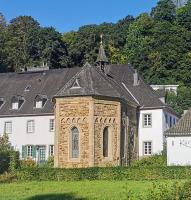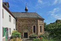 Die Kapelle gehört baugeschichtlich der Spätromanik im rheinischen Übergangsstil an, erkennbar an der Verbindung romanischer Wandöffnungen mit spitzbogigen Kreuzrippengewölben gotischer Prägung. Um 1752 wurde das Drempelgeschoss vermutlich erhöht, um eine einheitliche Trauflinie mit dem westlich anschließenden Wirtschaftsbau zu erzielen. Nach Verfall und profaner Nutzung im 19. Jahrhundert erfolgte um 1900 eine grundlegende Restaurierung unter Leitung von F. C. Heimann, bei der unter anderem Dach, Kranzgesims, Südportal und Spitzbogenfries erneuert wurden.