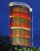 Der Post Tower Bonn wird durch Yann Kersalés und Michael F. Rohdes Lichtkonzept zu einem nächtlichen Wahrzeichen aus Glas und Farbe. Über 2.000 computergesteuerte Leuchten in mehreren Ebenen lassen die Doppelfassade des 162,5 Meter hohen Gebäudes changieren, akzentuieren Struktur und Transparenz und verwandeln den Turm je nach Anlass in ein leuchtendes Symbol.