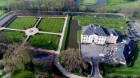 Die Wassergräben sind nicht nur ein historisches Verteidigungselement, sondern zugleich ein wesentliches gestalterisches Motiv. Sie fassen die Baukörper räumlich und spiegeln die Fassaden, wodurch sich eine ausgeprägte Bildwirkung im Landschaftsraum ergibt.