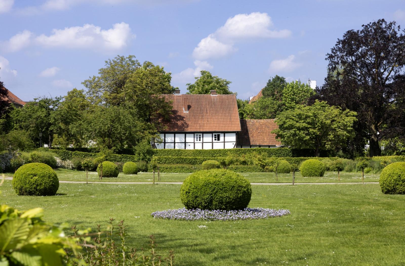 Dieser wurde anlässlich der Landesgartenschau 1988 nach historischen Plänen und unter Verwendung zeitgenössischer Pflanzen wie alter Rosensorten teilrestauriert. Die ehemalige Orangerie, ein Backsteingebäude mit spätklassizistischen Bauformen, stammt aus dem Jahre 1873.