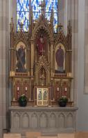 Der Bau ist als neugotische Basilika konzipiert. Charakteristisch sind das hohe Mittelschiff und die beiden niedrigeren Seitenschiffe. Im rechten Seitenschiff befindet sich eine Empore, die ursprünglich dem Kirchbesuch der gräflichen Familie vorbehalten war und bis heute erhalten ist. Der neugotische Hochaltar, um 1860 entstanden, ist aus Eichenholz gefertigt und entspricht in Material und Formensprache dem Entstehungszeitraum der Kirche.