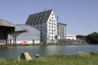 Die Sanierung und Umnutzung historischer Speicherbauten, der selektive Abriss veralteter Hafenanlagen und die Integration von Neubauten erzeugten eine kleinteilige Mischung aus gastronomischen Angeboten, kulturellen Einrichtungen sowie Verwaltungs- und Bürogebäuden der Kreativwirtschaft und verschiedener Dienstleister. Historische Baustrukturen wie der ehemalige Flechtheimspeicher oder ein verbliebener Hafenkran wurden bewusst als identitätsstiftende Landmarken erhalten. Die heutige Attraktivität des Quartiers ergibt sich aus der Kombination von Wasserlage, industriell geprägter Bausubstanz und kultureller Verdichtung. Während am Nordufer gastronomische Betriebe, Clubs, Theater und Kultureinrichtungen dominieren, wird das Südufer zunehmend von Neubauten mit Büronutzung geprägt.